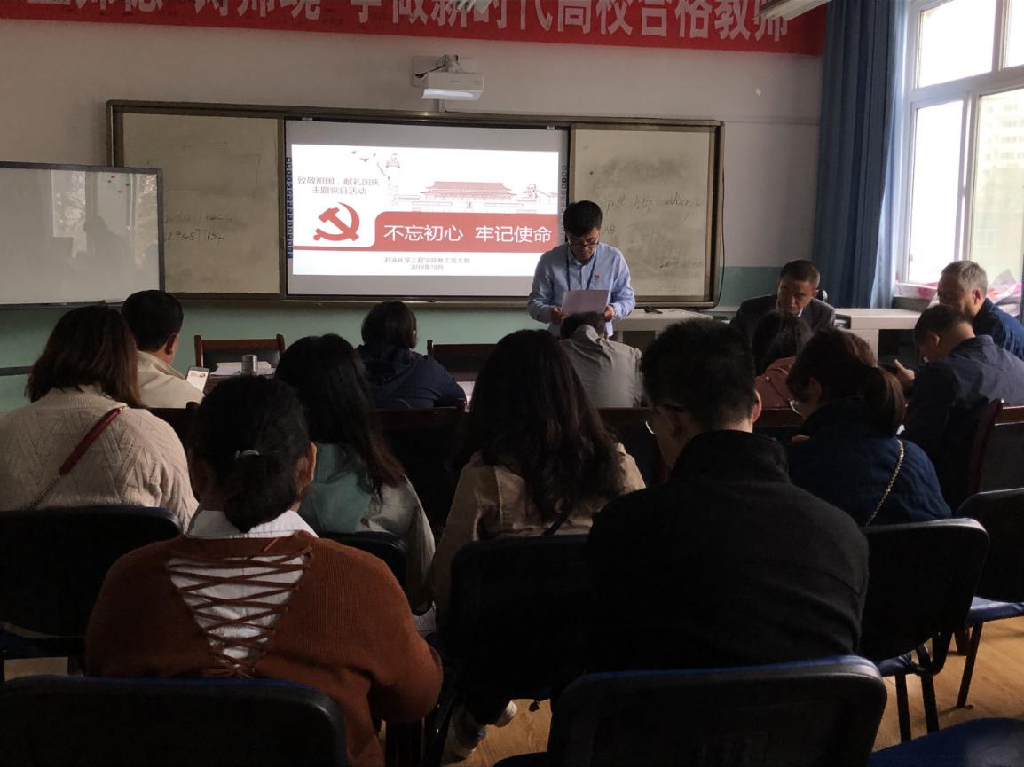 10月9日下午,beat365在线官网入口于石化楼会议室组织教工党员开展了“致敬祖国,献礼国庆”主题党日活动。