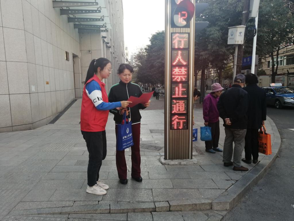 为了倡导行人文明出行,使交通有序进行。beat365在线官网入口爱溢石化青年志愿者协会于近日开展“交通志愿安全相伴”志愿者活动,志愿者协会成员于西固公园十字路口协助交警指挥交通。