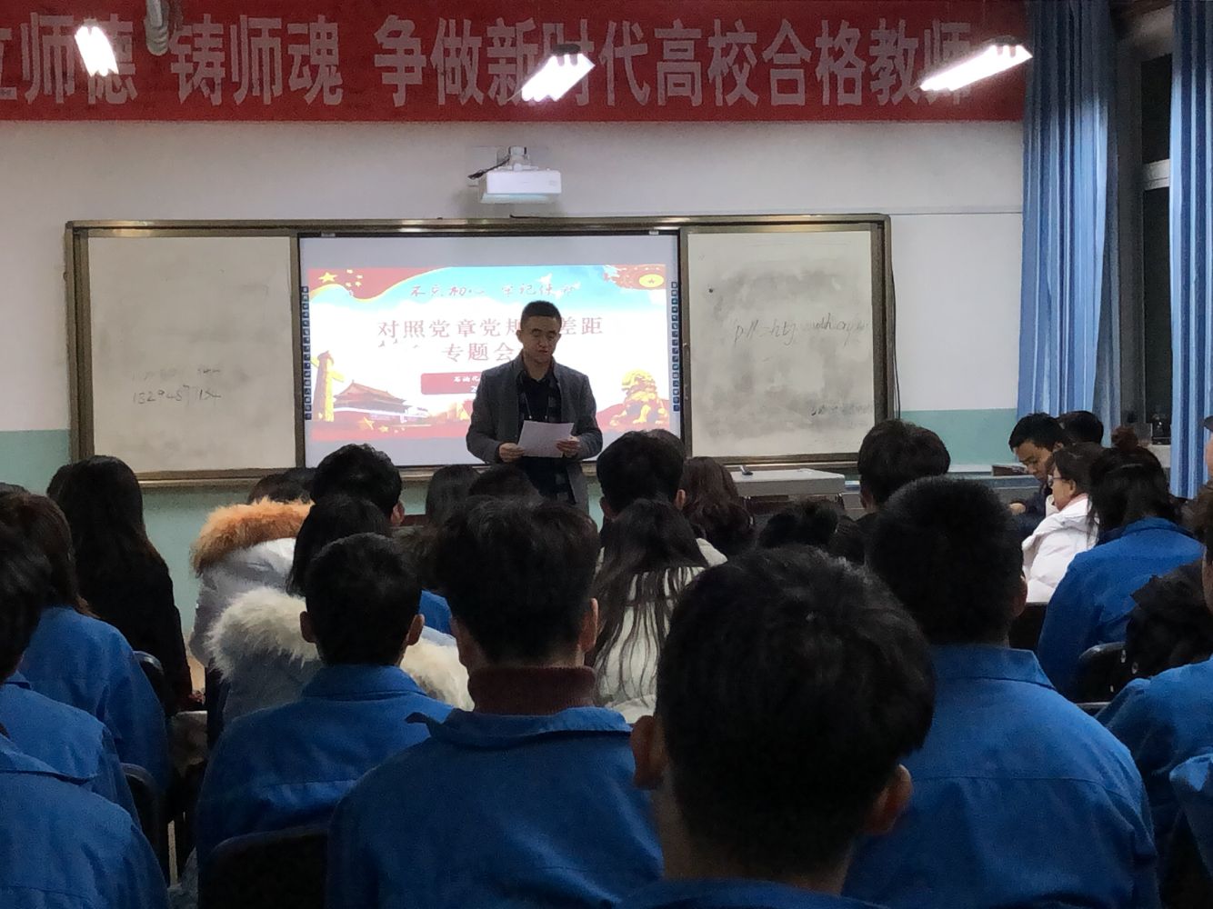 会上,赵立祥首先带领大家认真学习了习近平新时代中国特色社会主义思想,并围绕“守初心、担使命,找差距、抓落实”的总要求,对照习近平新时代中国特色社会主义思想和党中央决策部署,对照党章规定以及党员条件和义务权利, 对照《中国共产党廉洁自律条例》、《关于新形势下党内政治生活的若干准则》、《中国共产党纪律处分条例》,对照初心使命,对照广大师生对教育工作新期待,对照先进典型身边榜样,坚持高标准、严要求查摆自身不足,查找党员意识、担当作为、服务师生、遵守纪律、作用发挥、工作短板等方面的差距和不足进行了深入分析。接着,他带头作个人对照检视,全体党员同志逐一进行对照检视,并开展批评与自我批评。