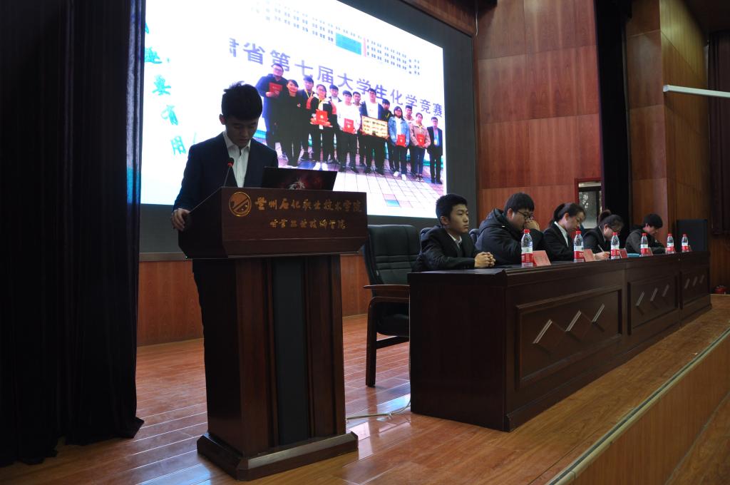 大赛伊始,由员工辅导员马伟老师致开场词。他提出,化工比赛是我们作为我们老员工不可或缺的一部分,我们每位同学都应该积极参加。之后由各获奖选手进行了宣讲,他们提出,大学是一个探索与锻炼的机会,各种事物,无论是否和自己专业相关,都可以尝试一下,看看自己到底喜欢做什么、能做什么、能做到什么程度。更应该积极投身于自我提升,不断完善自我,多参加各类比赛,不断磨炼自己,使自己变得更加优秀。