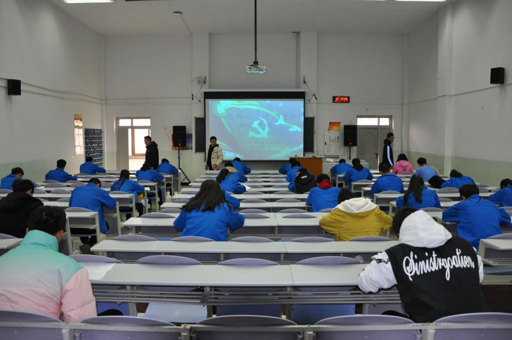首先由宣传部的工作人员为参赛选手发放试卷,同学们全神贯注,聚精会神的把想好的答案写在试卷上。初心即使命,以党的十九大胜利召开为起点,中国已经站在了中国特色社会主义的新时代,在这个激动人心的新时代,共产党人的初心使命,就是实现社会主义现代化和中华民族的伟大复兴。这次知识竞赛,即是一次学习,也是一次动员,我们将以此为新的起点,在中国共产党的领导下,以十九大精神为指引,为推进建设新风采贡献力量。随着同学们一个个交出自己满意的答卷走出赛场,本次大赛落下了帷幕。