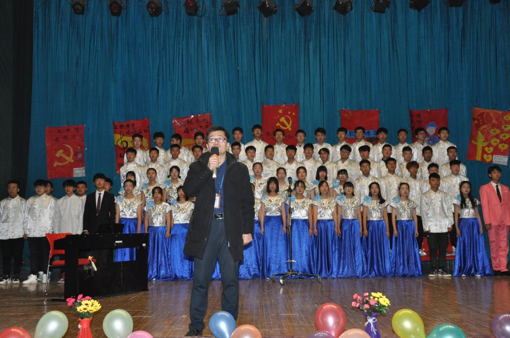 活动伊始,由党支部副书记赵立祥老师致开场词,伴随着一阵阵掌声,活动拉开了帷幕,首先合唱团的表演,点燃台下观众们的热情、活跃了氛围。接着各班以此登场,他们在舞台上,聚光灯下释放自我、展现自我,把握韵律,表达出对国家的爱意。用铿锵有力的歌声,把对先烈们的敬仰的思念化作实际行动。