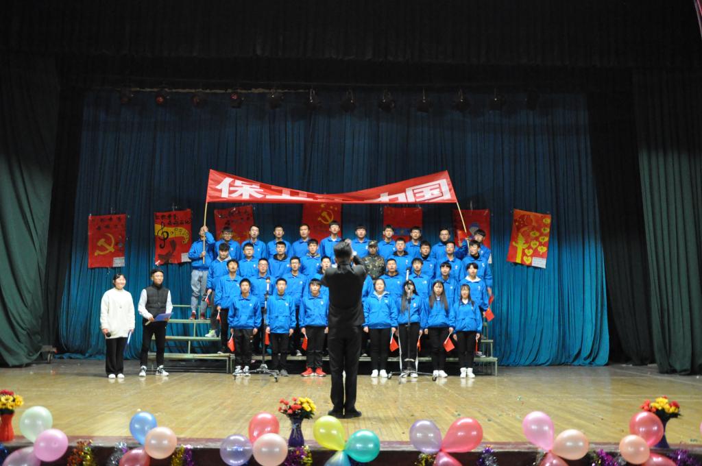 活动伊始,由党支部副书记赵立祥老师致开场词,伴随着一阵阵掌声,活动拉开了帷幕,首先合唱团的表演,点燃台下观众们的热情、活跃了氛围。接着各班以此登场,他们在舞台上,聚光灯下释放自我、展现自我,把握韵律,表达出对国家的爱意。用铿锵有力的歌声,把对先烈们的敬仰的思念化作实际行动。