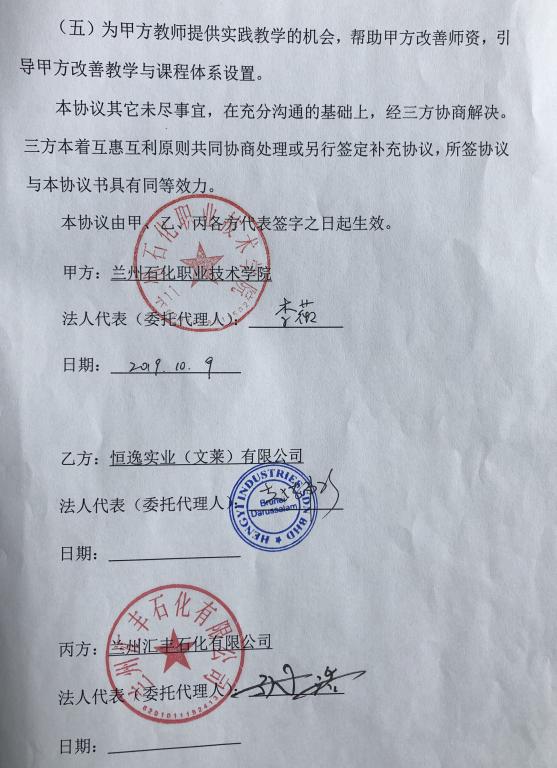 通过洽谈,beat365在线官网入口与兰州汇丰石化有限公司就恒逸(文莱)现代学徒班“校-企-企三方合作试点人才培养”达成合作共识,为进一步探索新型现代学徒制人才培养打下良好开端。