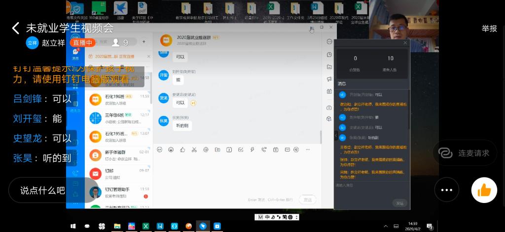 针对目前中国石油、中国石化等企业的招聘,他希望大家抓住机遇,积极准备应聘。最后他提出两点建议:一是疫情期间大家时刻警惕不法分子发布的虚假信息,防止上当受骗;二是对近期新就业以及就业单位变更的同学及时办理新的就业关系,并更新就业平台信息,以便后续的毕业派遣工作。