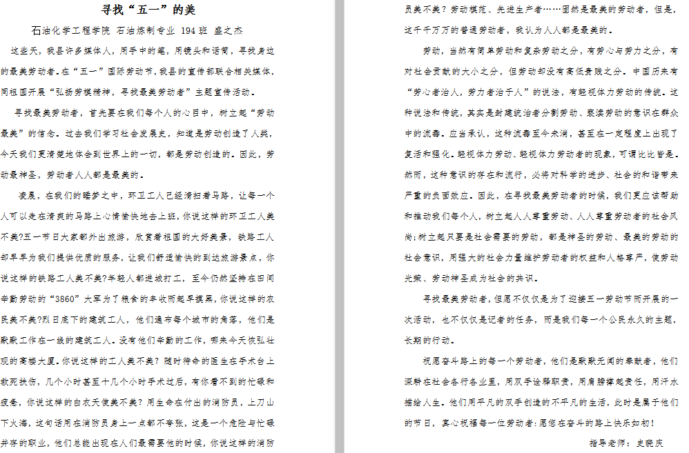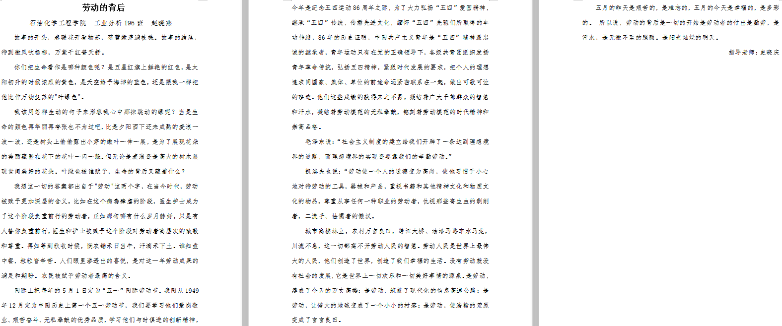 为引导员工尊重普通劳动者,培养勤俭、奋斗、创新、奉献的劳动精神,树立正确的劳动价值观,beat365在线官网入口深刻领会中共中央、国务院发布《关于全面加强新时代大中小学劳动教育的意见》文件精神,于近日组织开展以“劳动最美丽 奋斗最幸福”为主题的员工征文活动,18、19级部分同学参加。