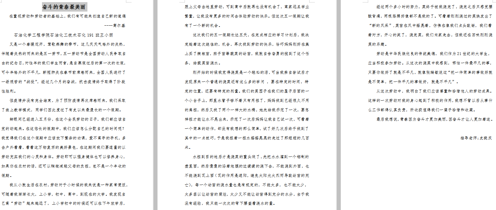 为引导员工尊重普通劳动者,培养勤俭、奋斗、创新、奉献的劳动精神,树立正确的劳动价值观,beat365在线官网入口深刻领会中共中央、国务院发布《关于全面加强新时代大中小学劳动教育的意见》文件精神,于近日组织开展以“劳动最美丽 奋斗最幸福”为主题的员工征文活动,18、19级部分同学参加。