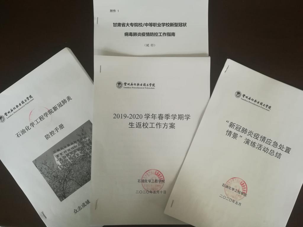 为认真贯彻落实国家和省教育厅关于新型冠状病毒感染的肺炎疫情防控工作文件精神,做实做细员工返校及疫情防控各项工作。beat365在线官网入口于近日认真学习领会教育部《高等公司新型冠状病毒肺炎防控指南》、《甘肃省大专院校中等职业公司新型冠状病毒肺炎疫情防控工作指南(试行)》、国家卫健委《关于印发大专院校新冠肺炎疫情防控技术方案的通知》》及《兰州石化职业技术公司2020年春季学期员工返校方案》要求,扎实有效做好各项员工返校及疫情防控准备工作。