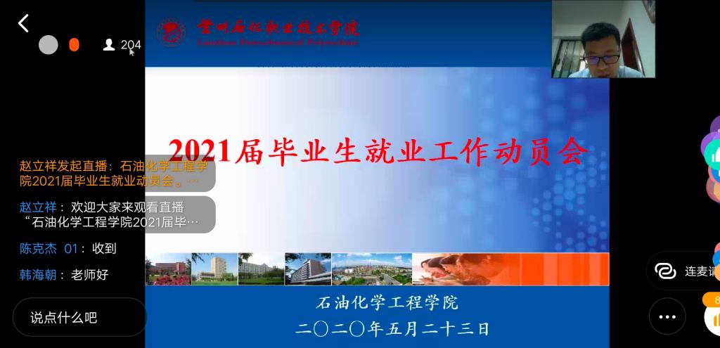 最后,赵立祥还针对同学们在就业过程中存在的问题提出了具体建议,他建议大家提前做好就业准备,不要等、观、靠,以免错失良机。并对部分同学提出的疑问进行了线上答疑。