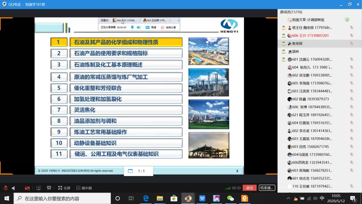 5月11日-22日,恒逸企业专家导师杨政、杨仕海、李厚亮等多次通过QQ、钉钉直播方式,面向恒逸(文莱)现代学徒制181班全体员工,开展了常减压蒸馏、柴油加氢等多套装置生产技术的讲座,让员工们了解了企业实际生产技术,员工纷纷表示受益匪浅。