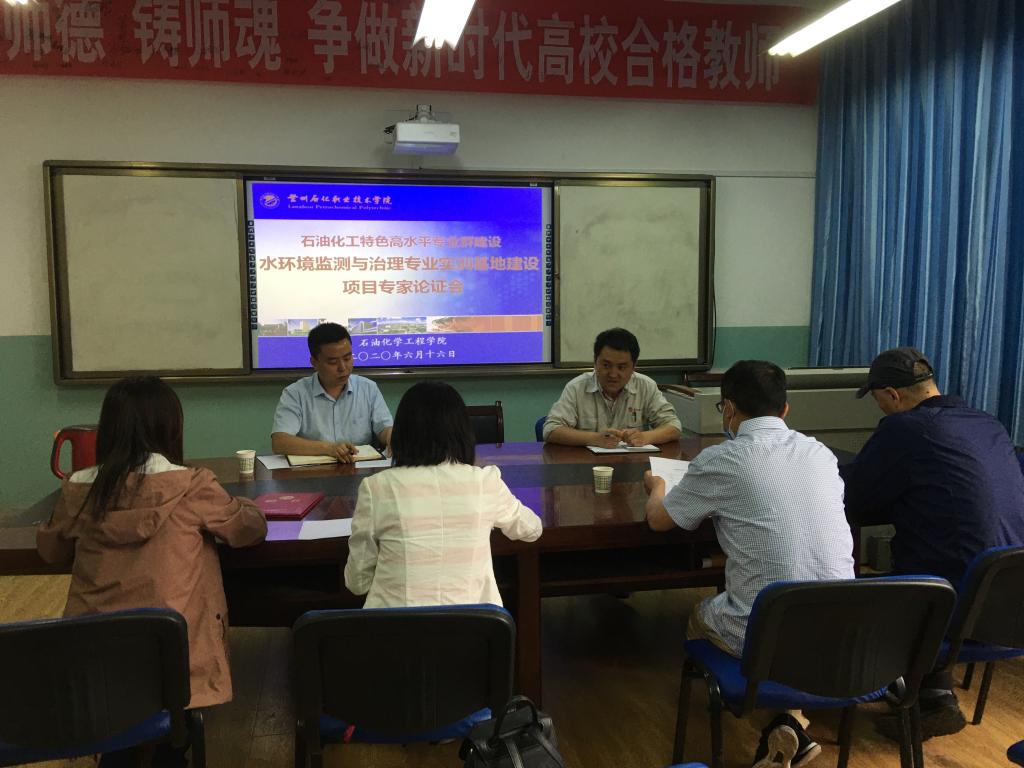 6月17日下午,beat365在线官网入口在化工楼三楼会议室召开“石油化工特色高水平专业群建设——水环境监测与治理专业实训基地建设项目论证会”。石化院负责人、相关教研室老师及兰州石化公司污水处理厂企业专家参加了论证会。会议由石化经理助理郑晓明主持。