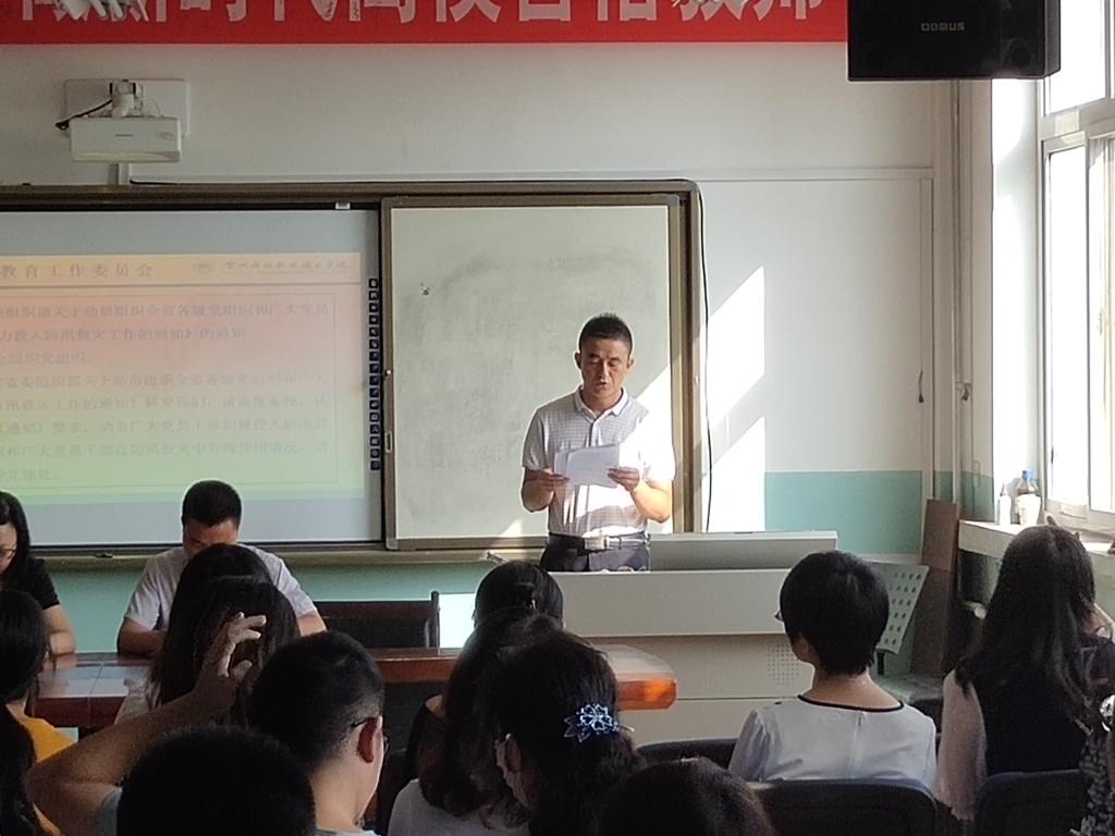 为深入贯彻落实党中央、甘肃省委省政府文件精神,2020年8月21日上午,beat365在线官网入口在化工楼309会议室组织全体教职工开展政治理论学习。