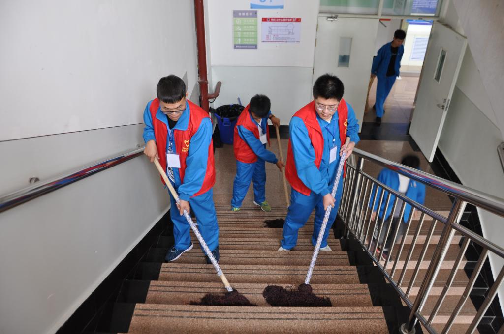 爱溢石化青年志愿者协会负责人组织动员志愿者对第四工业中心进行了全方位的打扫。在征的第四工业中心负责人同意后进入进行打扫。志愿者共分力5组,每组3人,一组打扫一层楼道。剩余其他人打扫四中心门口。他们对楼道内的废弃物品进行了处理,全面的擦拭和清理了告示牌。对楼道厕所有异味等情况,进行全方位的消毒处理。将打扫整理出的垃圾。杂物统一处理。志愿者在打扫卫生的同时,见到老师会主动问好,说老师您辛苦了。