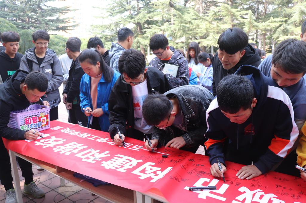 为了引领员工走进环保世界,体验现实校园生活,提高同学们对自然、社会和自我之间的联系的整体认识,形成自觉保护周围自然环境、节约资源的意识。beat365在线官网入口团学于近日在西区喷泉广场举行“与文明同行,与绿色相伴”的签字活动,19级志愿者及20级部分员工参加。