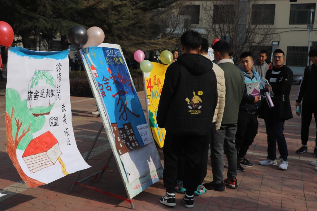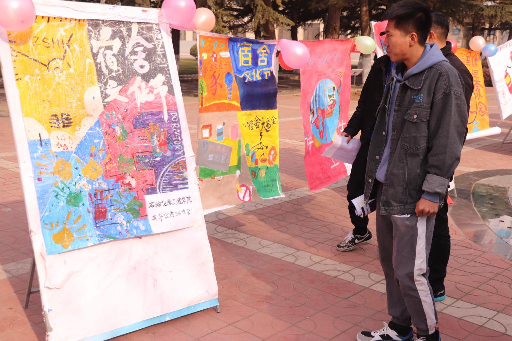 本次活动分三个环节进行:一是11月23日在喷泉广场开展的“文明海报宣讲活动暨宿舍文化节开幕仪式”。开幕仪式上,辅导员李胜泥,对宿舍文化、安全的重要性作出讲话。用海报的形式,使各个宿舍的特有文化、情怀跃然纸上。这对营造良好的校园氛围、宿舍氛围有着重要意义。辅导员老师及各团学干部秉承公平公正对所有参赛海报进行打分评比。