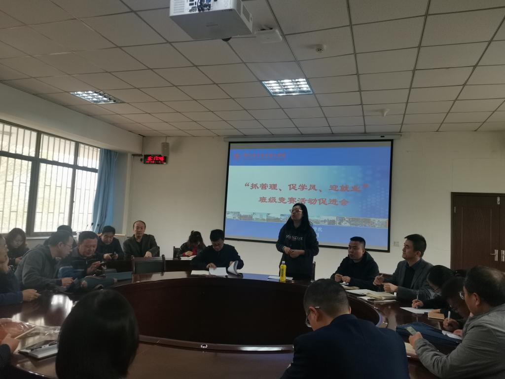 为了进一步把“抓管理、促学风、迎就业”班级竞赛活动不断推向深入,4月26日,公司召开了“抓管理、促学风、迎就业”班级竞赛活动推进会,公司领导及全体班主任参加了会议。