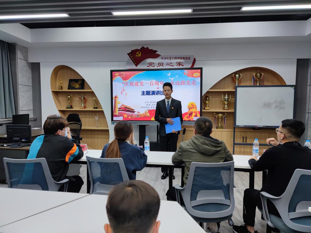 为庆祝建党100周年,深入推进党史学习教育的开展,引导广老员工学史明理、学史增信、学史崇德、学史力行。beat365在线官网入口于近日在化工楼开展“永远跟党走”主题演讲比赛。团学负责人、部分团学干部及20级部分员工参加本次活动。