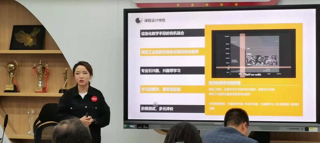 接着,由3个参赛团队针对所选课程和内容,从教学分析、教学策略、教学实施、教学反思、课程思政导入等方面,分别汇报了教学设计的思路和具体做法,从多角度考核参赛教师们的专业技能及综合素质。各团队汇报结束后,评委老师们对参赛团队和作品进行点评,提出了富有针对性的建议和意见。