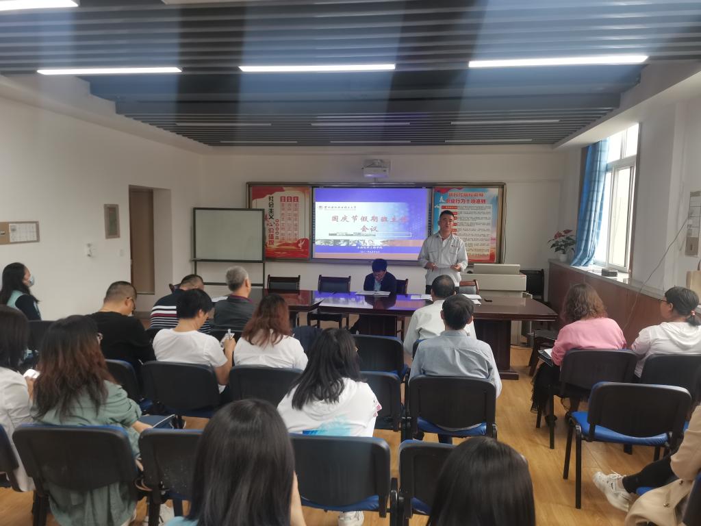 9月27日下午,公司召开国庆节假期班主任会议,安排部署国庆节假期员工管理工作,公司员工管理负责人和全体辅导员班主任参加会议。