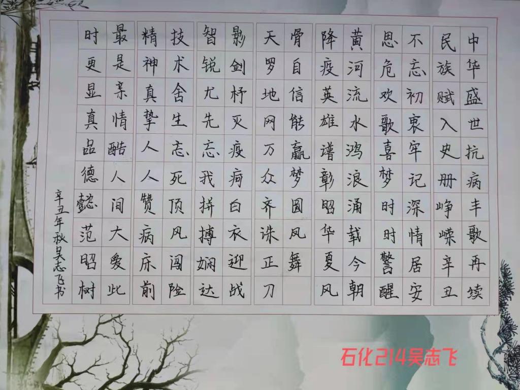 为加强同学们的防疫意识,丰富疫情期间校园文化生活,激发同学们的爱国情怀,展现中国传统书画的魅力,beat365在线官网入口艺韵协会于10月30日-11月8日举办"众志成城共抗疫情"主题书画大赛,21级部分同学参加此次活动。