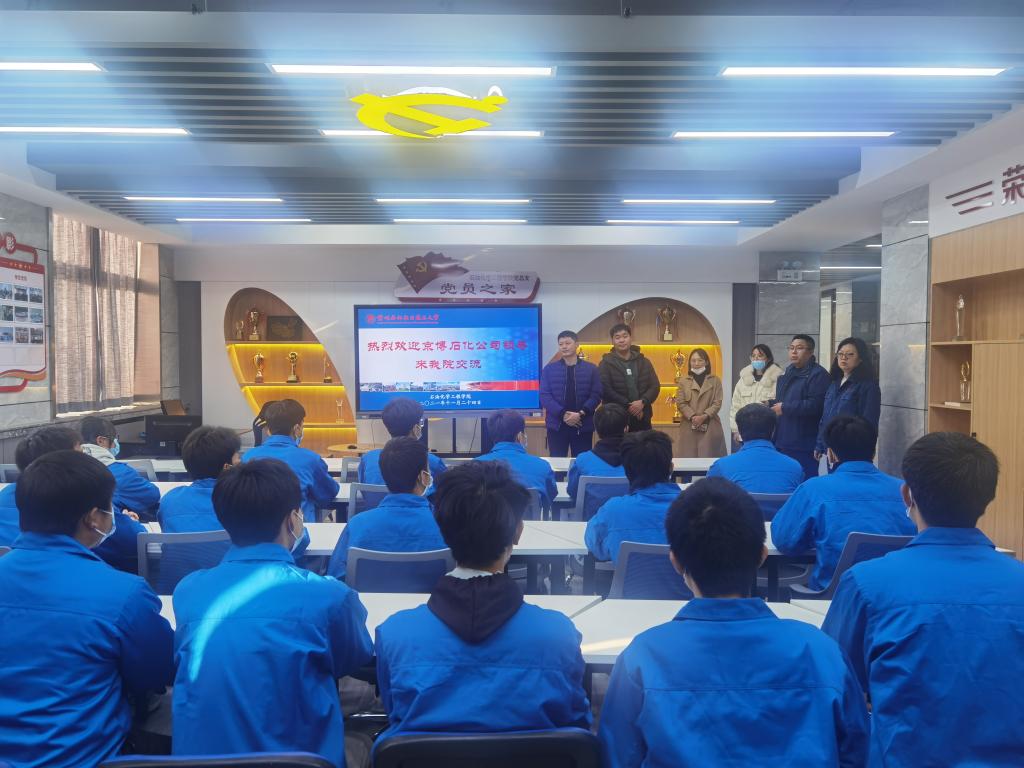 为加强校企深度融合,有效对接人才培养方案,山东京博石油化工有限公司领导于近日莅临beat365在线官网入口,在化工楼二楼党员之家与老师及现代学徒制班级京博石油炼制211班员工开展交流活动。