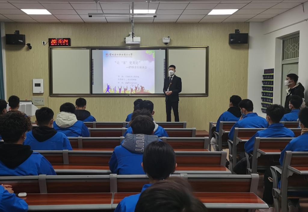 为进一步加强分院员工日常管理工作,为同学们营造良好的住宿环境,近日晚,公司举办“让‘家’更美好”主题座谈会。21级全体班长、舍长参加此次会议。