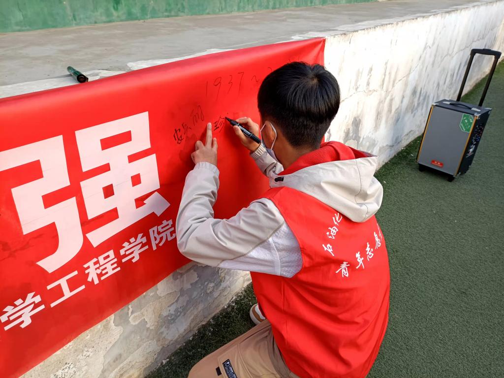 中午时分,青年志愿者协会负责人组织青年志愿者开展纪念活动。活动开始,所有青年志愿者神态庄严,面向国旗行注目礼,齐唱国歌;紧接着志愿者们及其他师生们在“铭记苦难,勿忘国耻,吾辈自强”横幅上进行签字活动,旨在使同学们在明晰历史的同时更加珍惜今天的幸福生活,化悲痛为力量,奋发图强。同时提醒每个人都应该正视历史,吸取教训,为国家更美好的明天而奋斗。