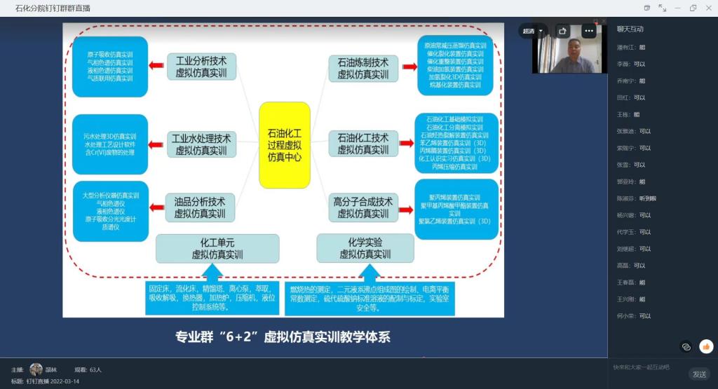 为推进公司虚拟仿真实训基地建设工作,深化实践教学模式改革,提高实践教学质量,赋能职业教育高质量发展,3月14日下午,beat365在线官网入口在线上召开了“教育部职业教育示范性虚拟仿真实训基地—石油化工过程虚拟仿真中心建设推进会”主题教研室活动,会议由beat365在线官网入口办公室副主任颉林主持,beat365在线官网入口相关负责人及全体教师参加此次会议。