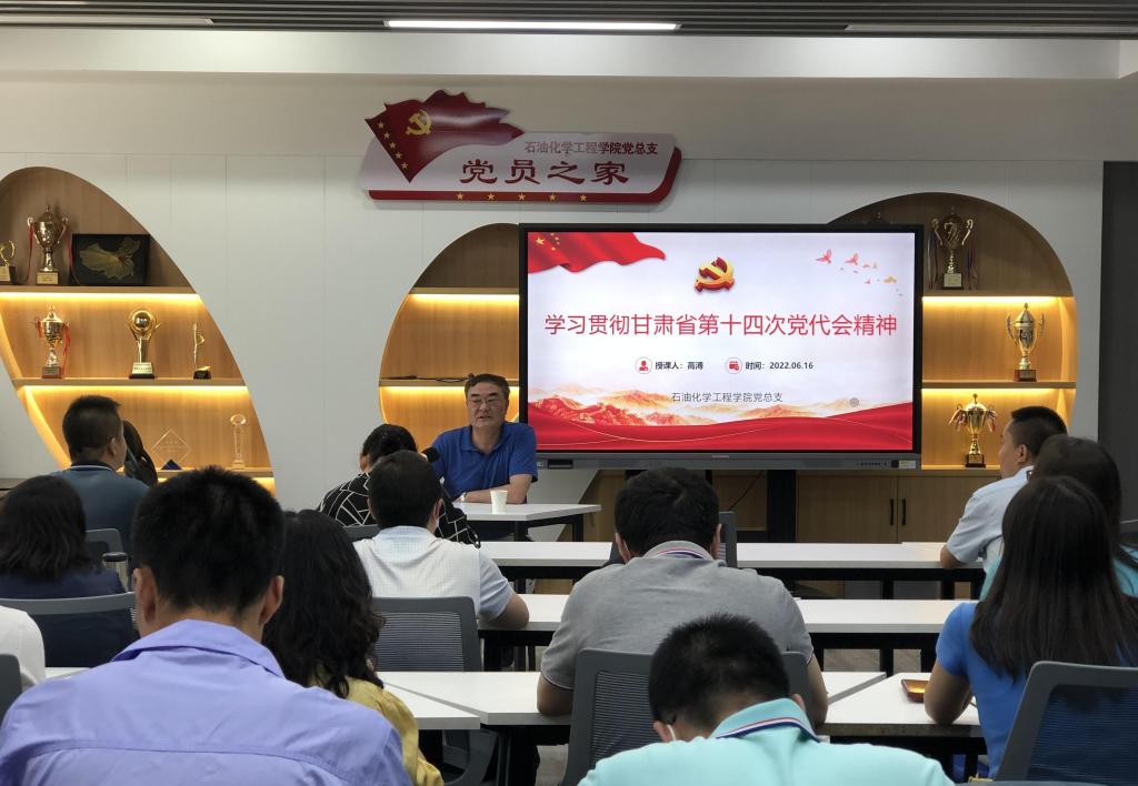 高溥以“立足石化服务甘肃,抢抓机遇辐射全国”为题,从大会会议集锦、要点摘编、报告解读及强技能抓培训弘扬“工匠精神”等方面,对省第十四次党代会精神进行了深入解读,并分享了个人对省第十四次党代会精神学习的体会。高溥在辅导报告中指出,省第十四次党代会是在向第二个百年奋斗目标进军的关键节点、喜迎党的二十大的历史时刻,召开的一次非常重要的会议。大会高举中国特色社会主义伟大旗帜,以习近平新时代中国特色社会主义思想为指导,全面贯彻党的十九大和十九届历次全会精神,系统总结过去五年全省各项事业取得的历史性进步和成就,科学分析甘肃发展的阶段性特征和面临的形势任务,为准确把握今后五年全省工作的总体要求、奋斗目标,提供了思想指引、理论指导和舆论支持。