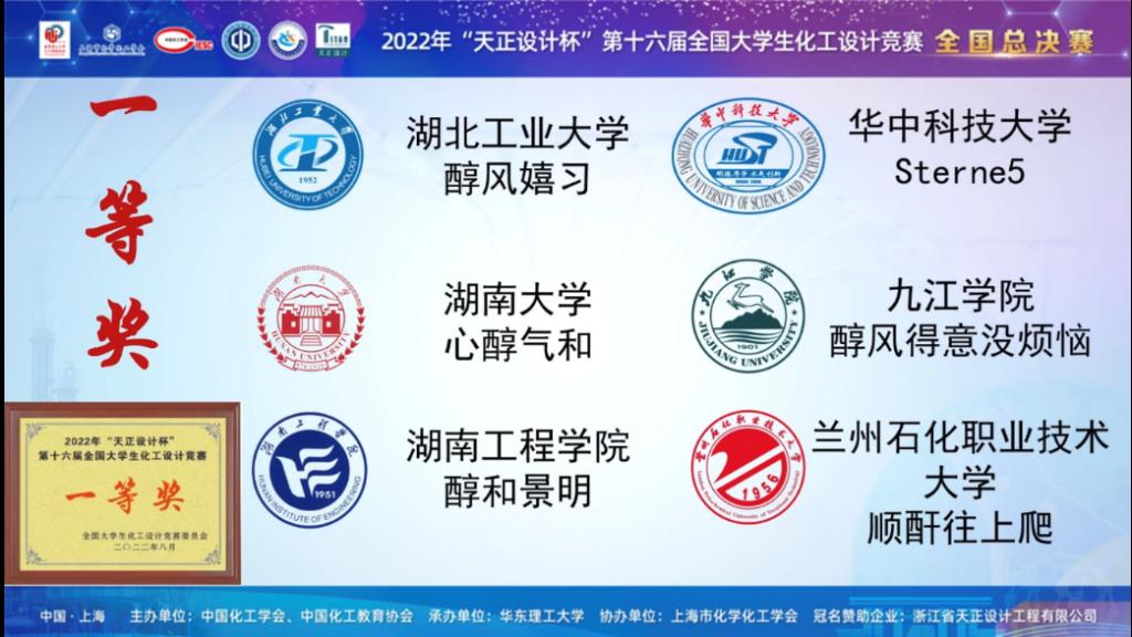 8月21—22日,2022年“天正设计杯”第十六届全国老员工化工设计竞赛全国总决赛在华东理工大学圆满落下帷幕,此次赛事共有华东理工大学、浙江大学、天津大学、南京工业大学等来自全国七个赛区决赛选拔出来的60支本科院校团队参加。公司beat365在线官网入口“顺酐往上爬”团队(赵驰,王武刚,王德平,马继伟,王文康)以西北赛区总决赛第四名的历史最好成绩成功突围进入全国总决赛,最终经过激烈角逐,再次荣获全国一等奖。