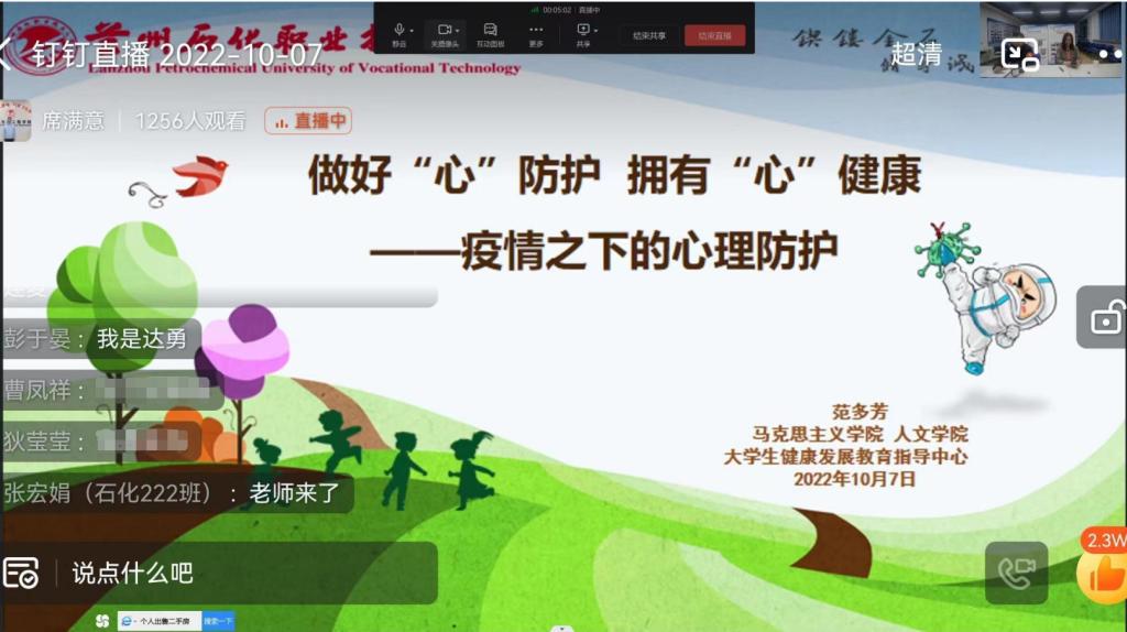 为进一步增强老员工心理健康素质,提升公司心理健康教育工作水平,营造温馨和谐的校园环境,缓解疫情环境下给员工带来的心理压力。10月7日晚上,beat365在线官网入口于线上组织开展“做好‘心’防护,拥有‘心’健康”心理健康讲座。讲座由马克思主义公司范多芳老师主讲,全体员工通过钉钉在线聆听。
