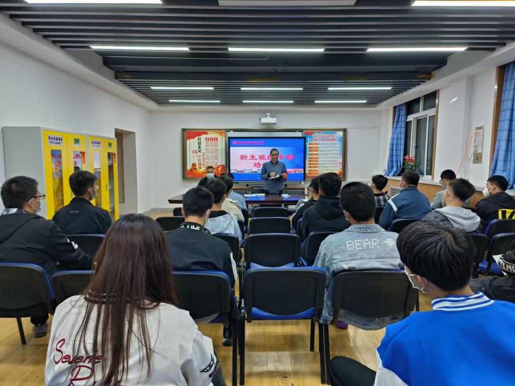 在当前“疫情”十分严峻的情况下,为进一步加强班级员工管理,提高班级干部工作能力,2022年11月2日公司开展了新生班级干部培训活动。由2名辅导员主持培训,40多名22级班级干部参加培训。