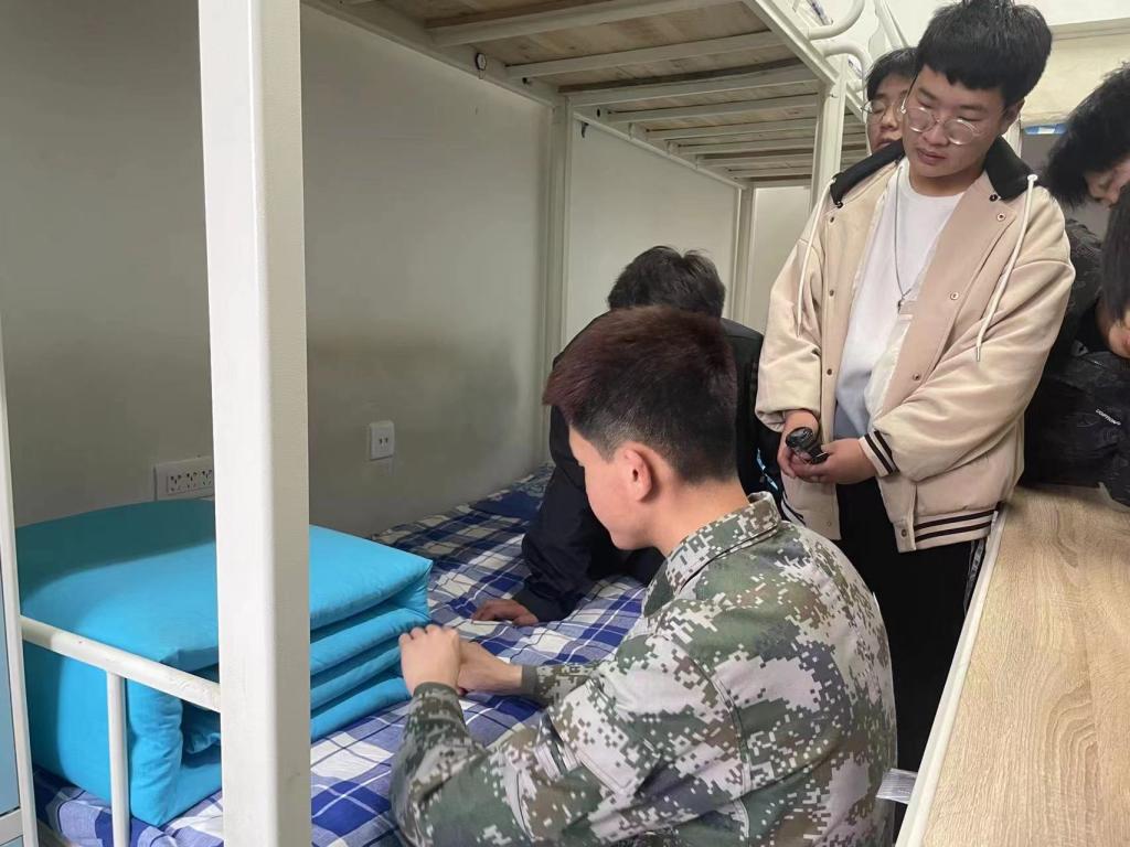 活动伊始,公司召开退伍老员工日常行为养成专项会议,鼓励同学们要继续保持部队优良传统和军人优良作风,在做好自我管理的同时,发挥示范引领作用,积极创建良好的宿舍生活环境。退伍老员工与班级“结对子”,入班级、进宿舍,耐心讲解叠军被的要领和技巧,并向员工展示叠军被的流程与需要注意的细节,对员工提出的问题给与精确解答,以确保所有同学看的懂、学得会。随后,退伍老员工对各宿舍长开展内务培训,现场展示叠被技巧和内务整理注意事项,帮助22级员工尽快适应宿舍的规范化管理,也促使员工在日常生活中养成良好的内务卫生习惯。