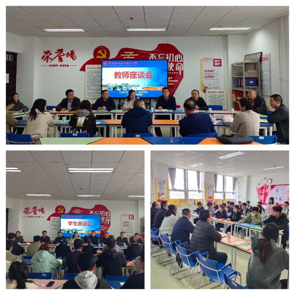 上午,公司经理带领班子成员调研了新区校区化工生产实训中心和综合实践中心,现场了解实验室运行及实践教学情况,随后调研组深入课堂开展集中听课。下午组织召开了员工座谈会和教师座谈会,座谈会上调研组认真听取了新区校区员工在学习和生活中存在的困难,并现场逐一做了答复。教师座谈会上经理与教师以及班主任亲切交谈,并对教师在教学和员工管理中存在的困难进行了交流和讨论,教师们敞开心扉,提出了解决目前两校区办学困难的有效措施。