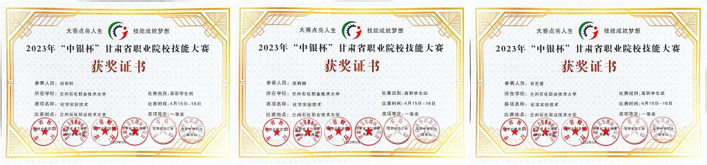 甘肃省职业院校技能大赛化学实验技术赛项(高职组)于2023年4月15日至16日在beat365顺利举行。此次大赛共有来自全省11所院校共计27名选手同台竞技。经过两天紧张有序的比赛,公司beat365在线官网入口刘雨轩、田芝蓉和张楠楠同学高质量完成了所有比赛项目,总成绩分别排名第一、第二和第三,均获个人一等奖。
