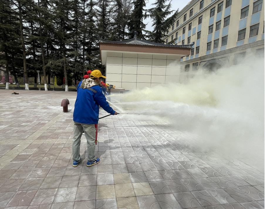 活动中,席满意讲解了灭火器的工作原理、设备结构、牌号分类、使用方法,指出了做好“消防”工作对安全生产乃至生命安全的重大意义,用身边案例为同学们讲解了校园“消防”工作的重要性。李胜泥就干粉式灭火器的灭火性能、存放保管、使用方法、灭火时机等进行了讲解示范,教会了消防队员在灭火时如何精准灭火、做好自我防范。之后,随着一声急促的哨音拉开了本次消防演练的序幕,30名义务消防队员手提灭火器冲向着火点,用灭火器喷嘴对准着火点,进行精准灭火。