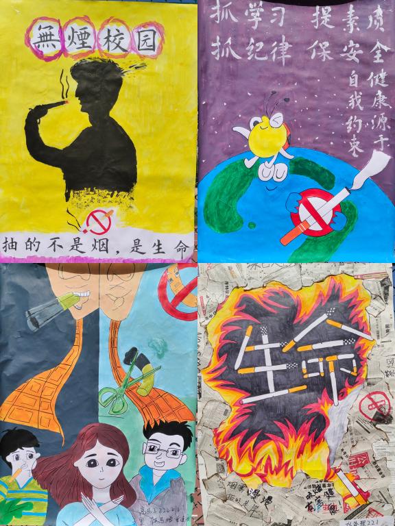同学们紧扣公司“抓学风提素质,抓纪律保安全”主题教育,根据活动规则采用手绘及绘画APP等多种作图形式进行“校园无烟倡议”海报设计。在创作过程中,同学们将了解到的吸烟危害知识绘入图中,写入画中,用简洁的文字和生动的图画来提醒大家吸烟的危害,呼吁大家共同建立清洁、无烟、健康的校园。设计作品简洁而不失深意,传递了关于“要求健康”的丰富信息,让人有一种心灵的“震撼”。活动结束后,活动负责人从主题贴切度、作品美观度、内容充实度等方面筛选部分优秀作品并在操场进行展览,旨在引导全体师生牢记使命,崇尚健康;珍爱生命,拒绝烟草;打造书香校园,共建无烟世界。