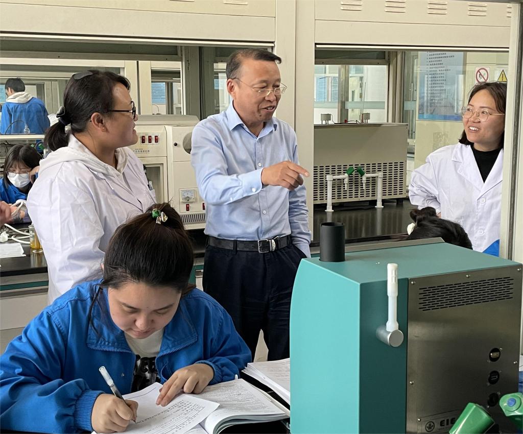 会后,在公司领导和专业教师的陪同下,赵华江一行参观了第四工业中心分析检验实训室。赵华江也为正在上实训的的员工进行了专业指导和技能传授。