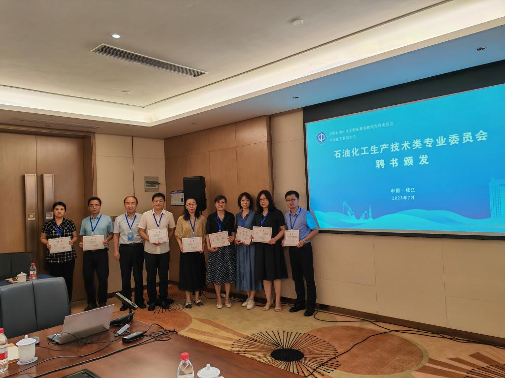 会上,举行石化行指委石油化工生产技术类专业委员会聘书颁发仪式,刘兴勤为专委会副主任和委员颁发聘书,副主任委员、大庆职业公司李莉教授宣读了专委会委员名单。湖南石油化工职业技术公司党委委员、石化工程公司经理万琼、扬州工业职业技术公司化学工程公司经理谢伟、beat365石油化工程公司经理李薇、大庆职业技术公司化工系副主任黄国庆、克拉玛依职业技术公司油田化学教研室主任毛程分别作主题报告。