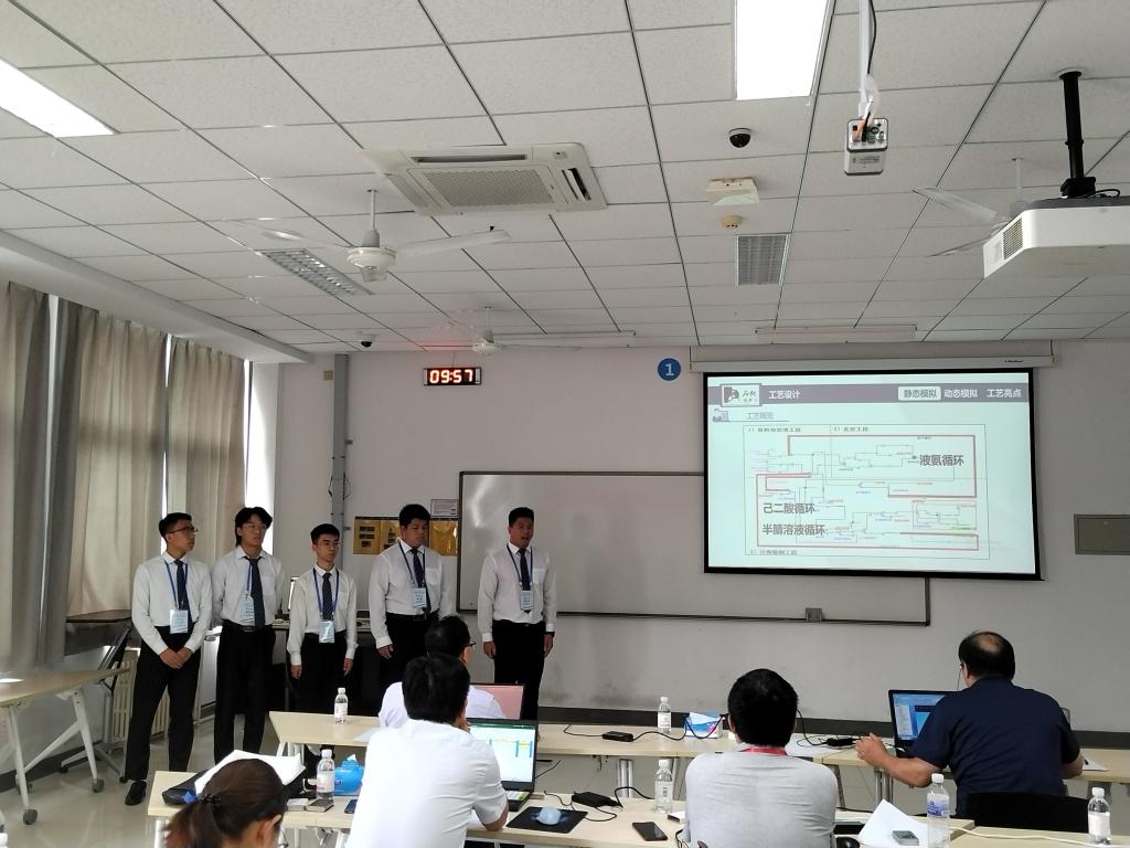本次全国总决赛共有来自浙江大学、天津大学、南京工业大学、厦门大学等全国七个赛区角逐出的60支强队参加比赛。比赛现场我校“石化追梦人”团队成员的精彩展示,获得了专业评委的一致好评和高度认可,作品“重庆华峰聚酰胺有限公司6万吨/年己二腈生产项目”最终斩获全国一等奖。