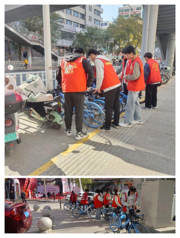活动开始前,志愿者们通过发放小卡片、现场布置展板等形式为过往的行人普及了交通安全知识,随后志愿者们身穿红马甲对乱闯红灯、逆向行驶等不文明行为进行劝阻,引导过往市民遵守交通法规,文明出行。活动中,除了对不文明行为进行劝阻外,志愿者们对校门口乱停乱放的共享单车进行了规整,以自身行为倡导大家争做文明市民。