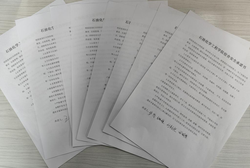 当晚,活动现场陈列了小型电煮锅、卷发棒、劣质充电宝等违规电器的实物和照片,教室的大屏上也播放着高校员工宿舍火灾案例视频,通过观看实物及视频的形式,让员工能够更加清晰地了解违规电器的种类和危害,从而敲响安全警钟,帮助其树立正确的安全观念。来自石油化工222班的刘中正同学表示,通过这样的形式让他们对违规电器有了更为具象的理解,其安全观念较之以往发生了明显的改变。活动结束后,同学们纷纷在宿舍安全承诺书上签名,以坚定自己不用违规电器的决心,坚决信守自己的承诺,并且表示一定将今天的所见所学带回宿舍,传达给更多的同学。