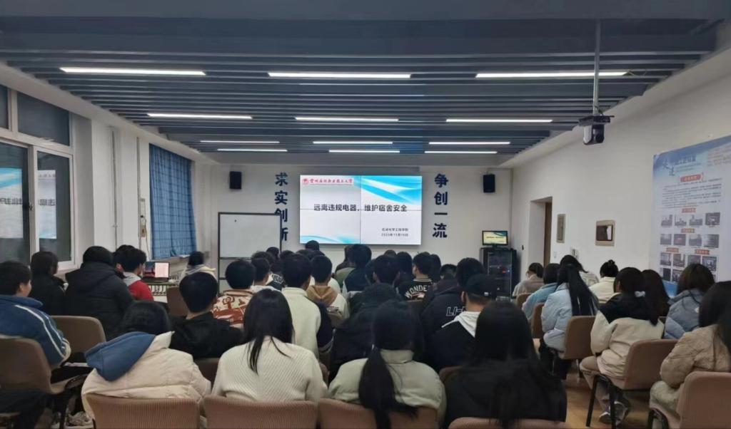 为保障公司员工宿舍用电安全,规范员工日常用电行为,杜绝在宿舍使用违规电器现象,提高员工安全意识,beat365在线官网入口于2023年11月16日晚在化工楼310开展了宿舍安全主题教育活动。全体团学干部及新生班长参加了此次活动。