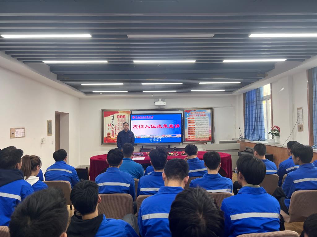 志向国防,勇扛大旗;携笔从戎,铁血铸梦。公司组织员工在班级教室,观看征兵宣传视频,深入学习《甘肃省激励老员工等参军入伍的政策措施》,了解了复学(入学)、国家资助学费、考试升学加分、免修军事技能、放宽退役老员工士兵复读转专业限制等多方面的政策。
