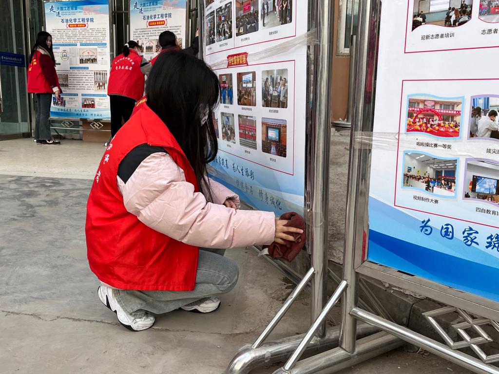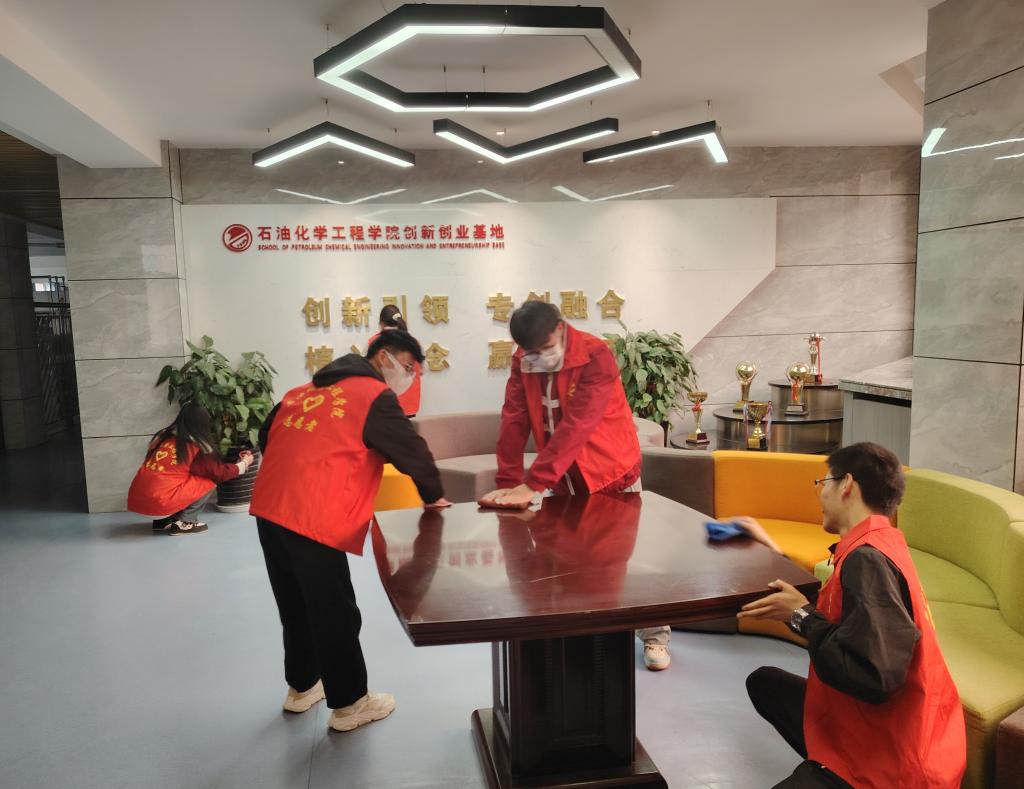 活动期间,公司青年志愿者协会的成员们携带卫生工具开展了集体劳动,对公司的办公室以及校园内的公共区域等进行了卫生清扫,志愿者们拿着抹布仔细擦拭着墙面灰尘,努力让石化大学这个大家庭变得焕然一新。三月的天气微凉,但同学们的劳动热情丝毫不减,大家不怕苦不怕累,身穿红马甲穿梭在校园内,是校园里最美的风景,更是微凉天气里的一道暖阳。