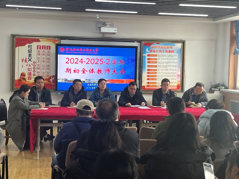 为做好开学准备工作,部署2025年重点工作,2月21日下午,公司召开了春季学期全体职工大会,会议由公司党总支书记主持,全体教师参加会议。